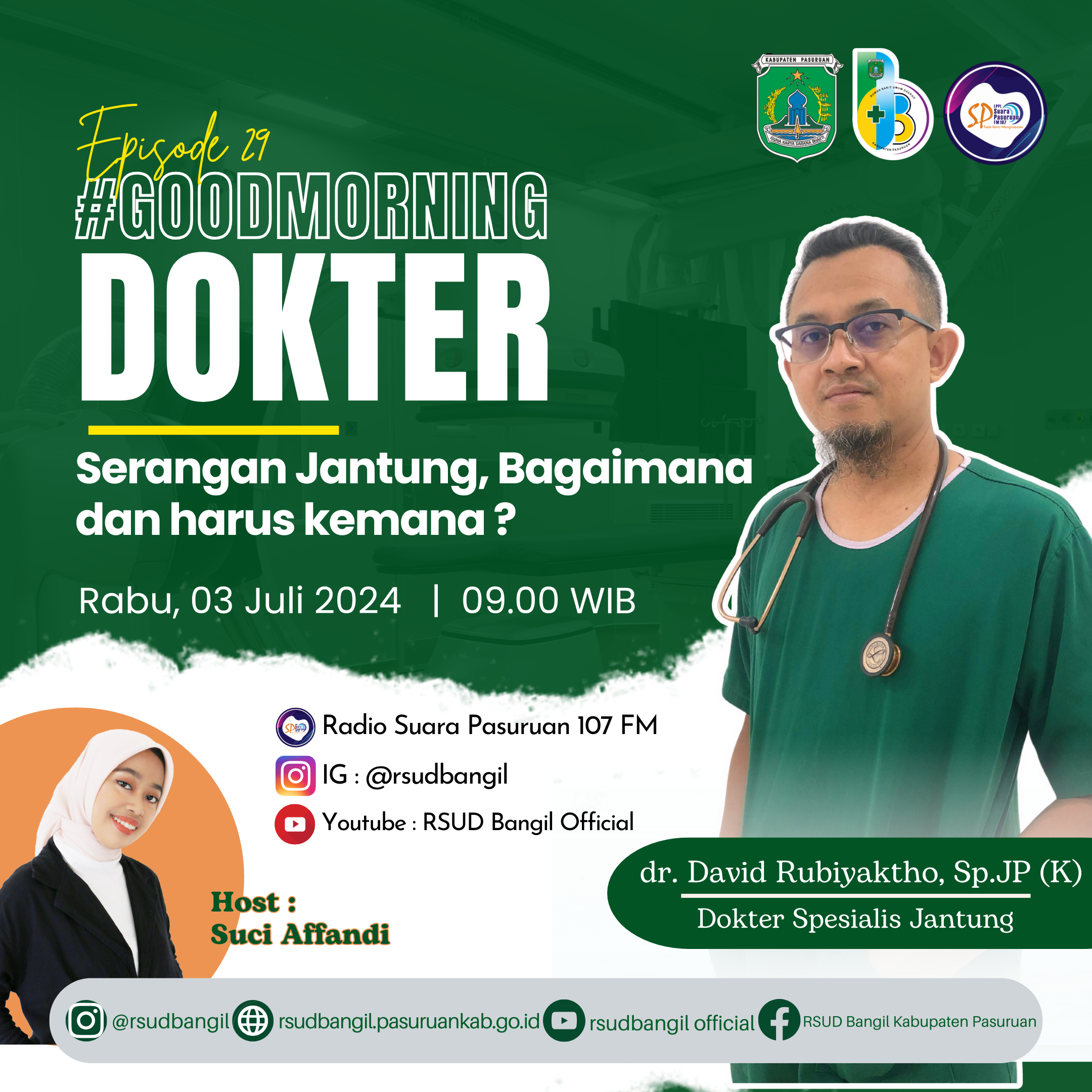 Dalam rangka memperingati hari Jantung Sedunia 2024 RSUD Bangil menyelenggarakan siaran radio di Suara Pasuruan 107 FM.